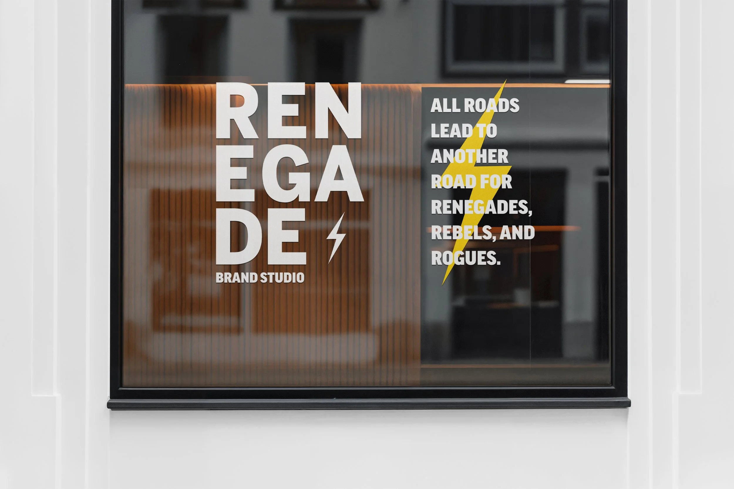 Renegade Brand Studio was a short-lived but high-conviction venture aimed at disrupting the standard agency-client relationship. Built on the principle of "intentional rebellion," the brand identity reflects a balance of professional grit and creative clarity. While the studio was retired in January 2020, the ideas behind it—efficiency, honesty, and bold visual storytelling—still drive every project I touch today.